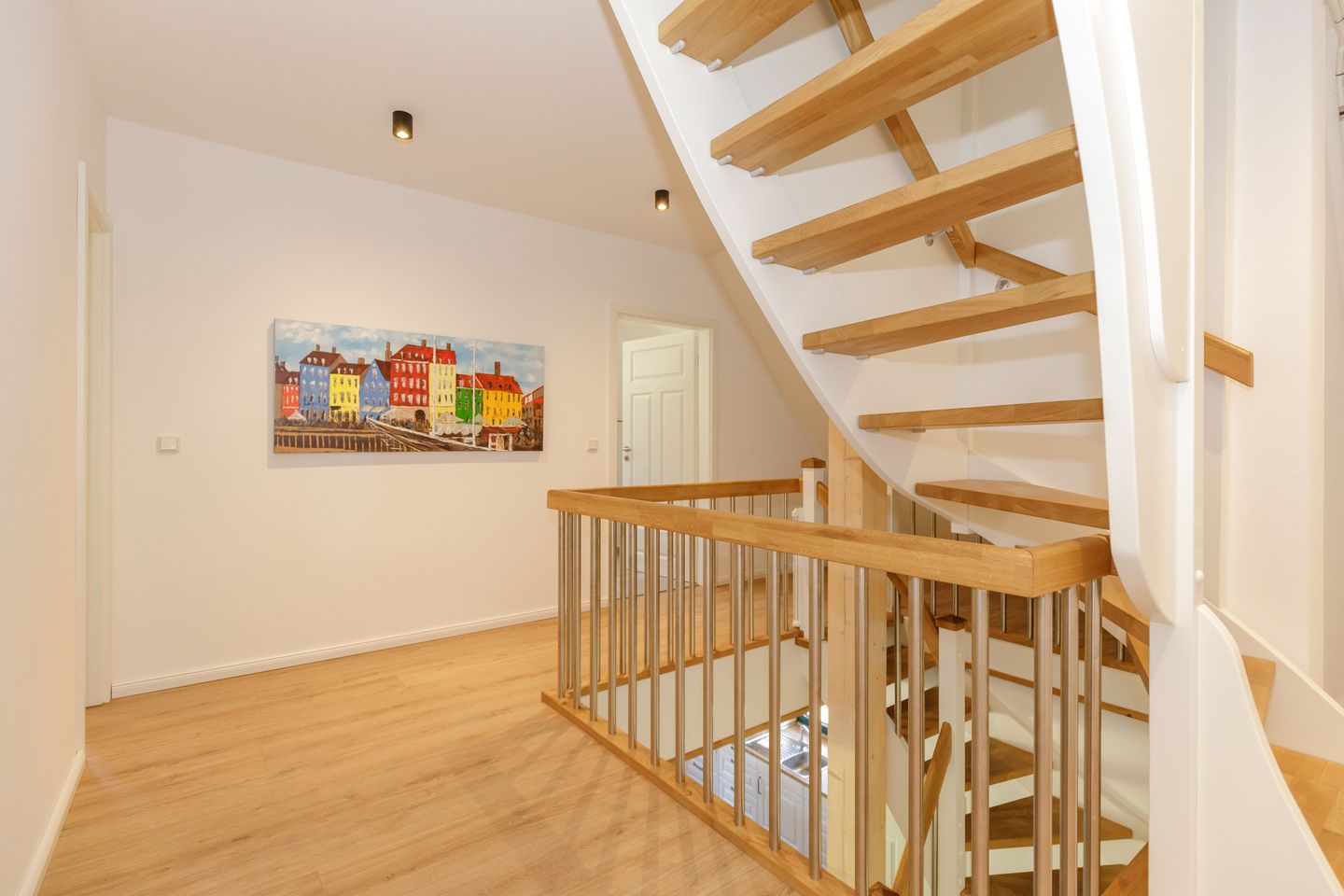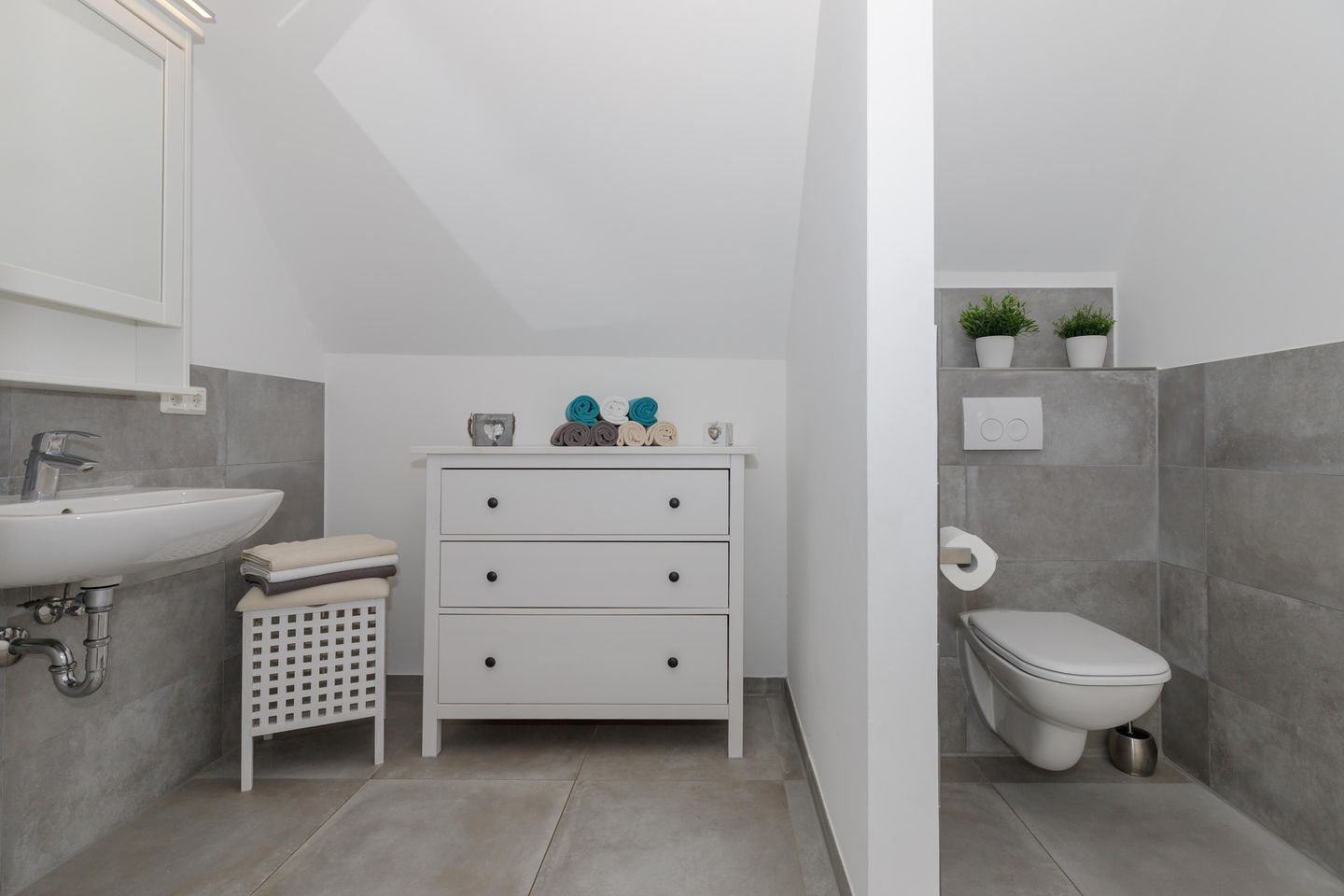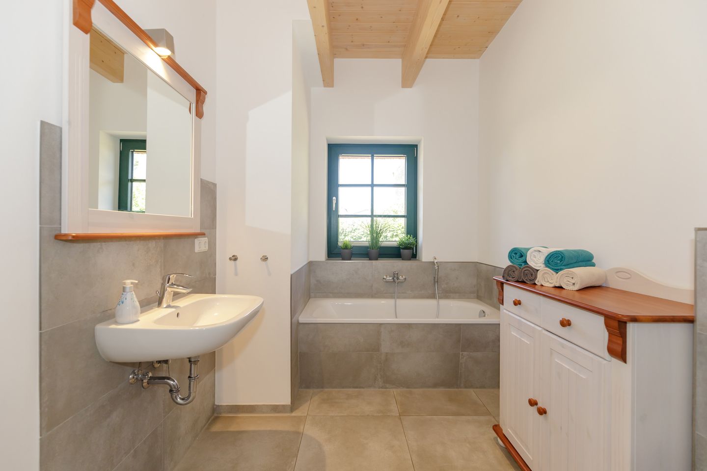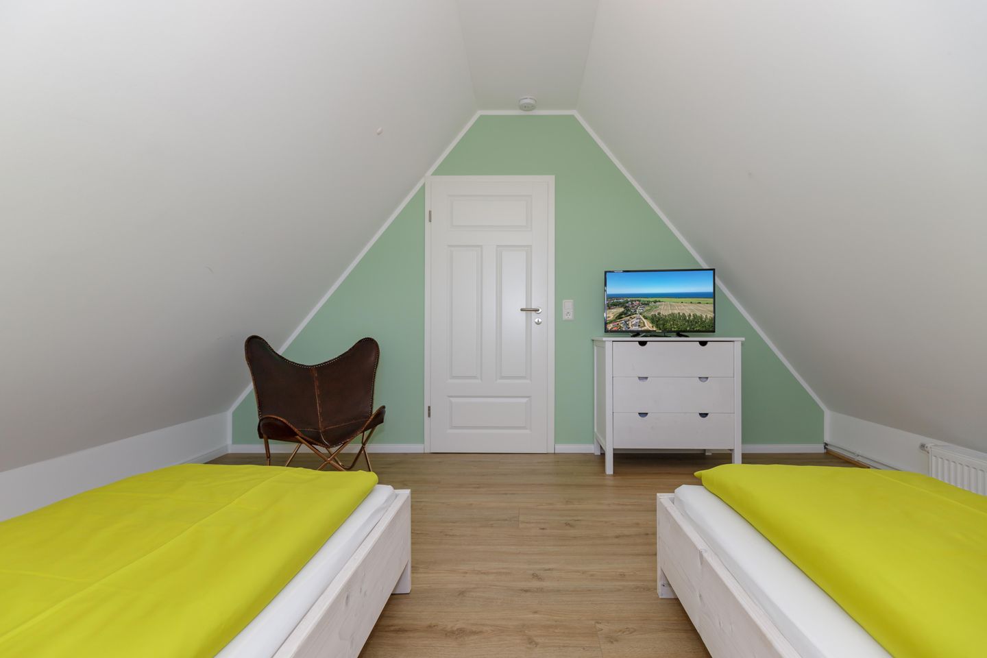 Im Inneren erwarten Sie fünf individuell gestaltete Schlafzimmer. Drei komfortable Badezimmer mit bodengleichen Duschen und eins mit einer Badewanne, bieten genügend Privatsphäre für alle Gäste. Ein separates Gäste-WC im Erdgeschoss sorgt für zusätzlichen Komfort. Die Fußbodenheizung im gesamten Haus sowie Fliesenböden im Wohnzimmer schaffen ein angenehmes Raumklima zu jeder Jahreszeit.