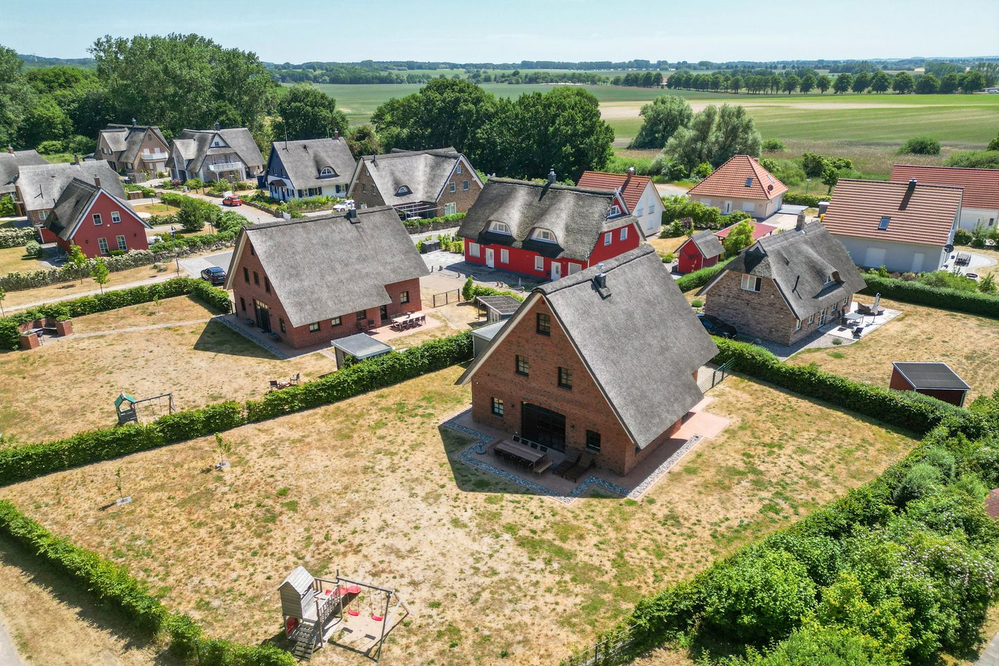Das großzügige Ferienhaus Reethaus Justus im Ostseebad Rerik bietet auf 175 m² Wohnfläche und einem weitläufigen Grundstück von 1.155 m² ausreichend Platz für bis zu zwölf Personen. Das 2019 erbaute, freistehende Reetdachhaus ist modern und familienfreundlich ausgestattet und eignet sich ideal für Familien und größere Gruppen, die eine erholsame Auszeit an der Ostsee suchen. Die Lage in einem ruhigen Dorf und die Nähe zum 900 Meter entfernten feinen Sandstrand verbinden Privatsphäre mit dem maritimen Flair der Ostseeküste.