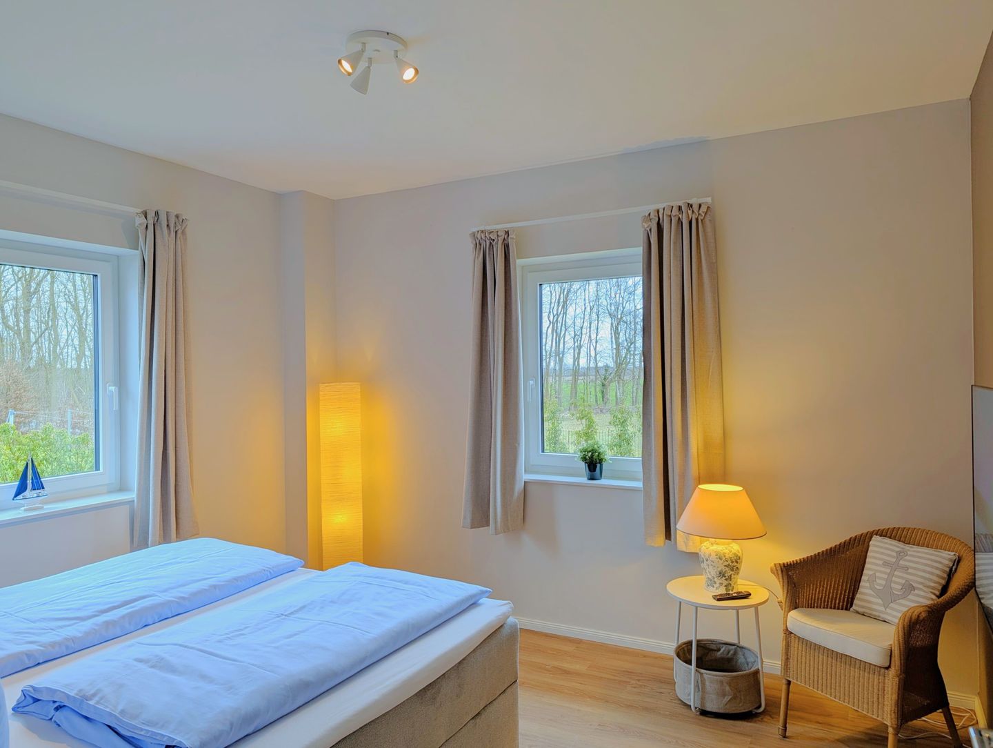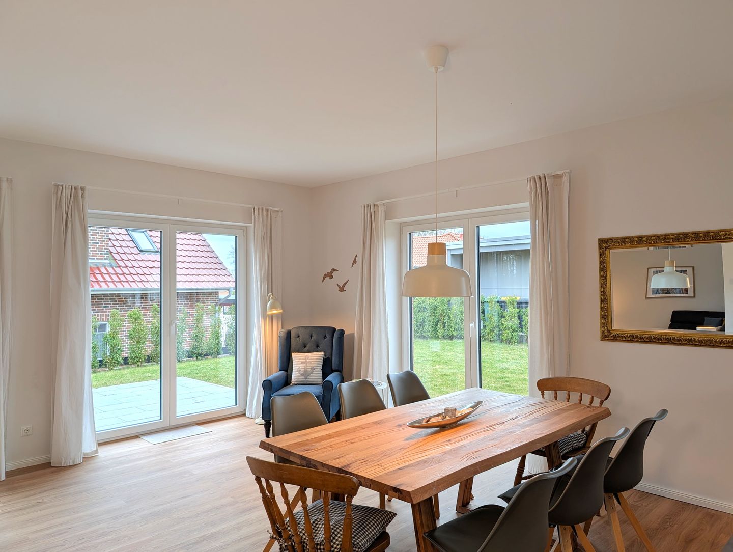 Das Ferienhaus „Küstenhus“ in Wischuer bietet Familien und Freundesgruppen auf 167 m² viel Platz für entspannte Tage in ländlicher Lage in Ostseenähe. Das freistehende Haus aus 2024 erstreckt sich über zwei Etagen und bietet 5 Zimmer, 4 Schlafzimmer und 2 Badezimmer – ideal für bis zu 8 Personen. Kinder sind herzlich willkommen, auch bis zu 2 kleine bis mittelgroße Hunde können gerne mitgebracht werden.