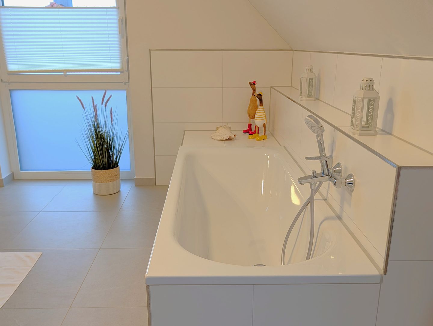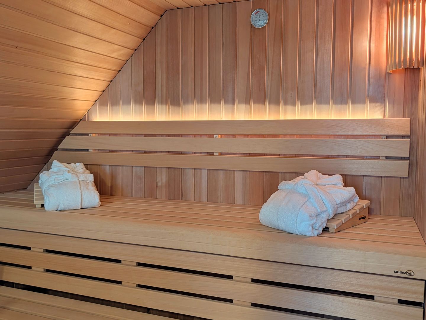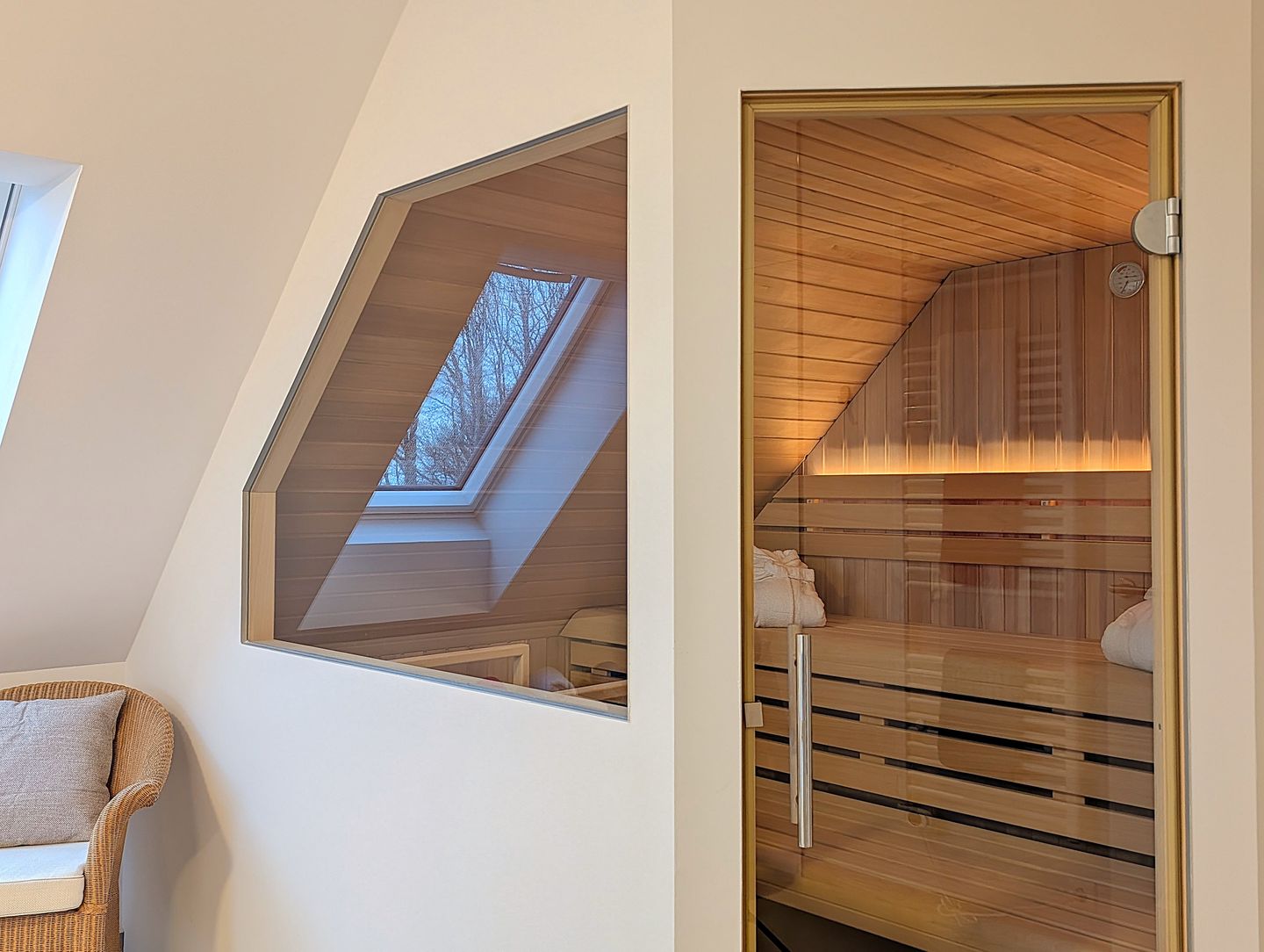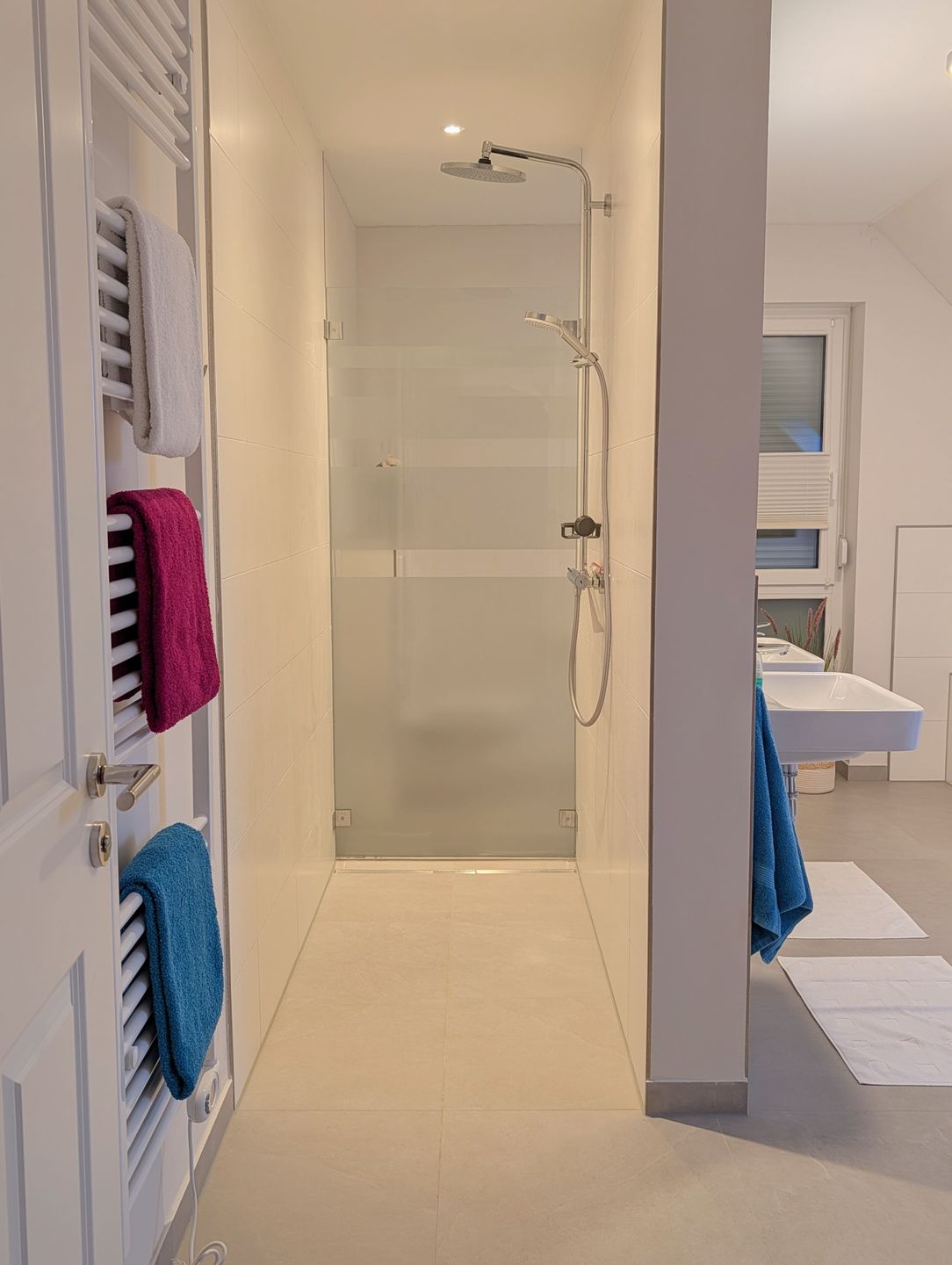 Das besondere Highlight unseres Hauses ist das großzügige Bad im Obergeschoss. Hier erwartet Sie eine wahre Wellness-Oase auf großzügiger Fläche: eine große begehbare Dusche, eine romantische Badewanne, ein Doppelwaschbecken und eine Panorama-Sauna. Hier bleiben keine Wünsche offen – entspannen Sie sich in stilvollem Ambiente, erleben Sie unvergessliche Momente und starten Sie entspannt in den Tag oder lassen Sie den Abend stilvoll ausklingen, während Sie die Annehmlichkeiten dieser Wohlfühloase genießen.