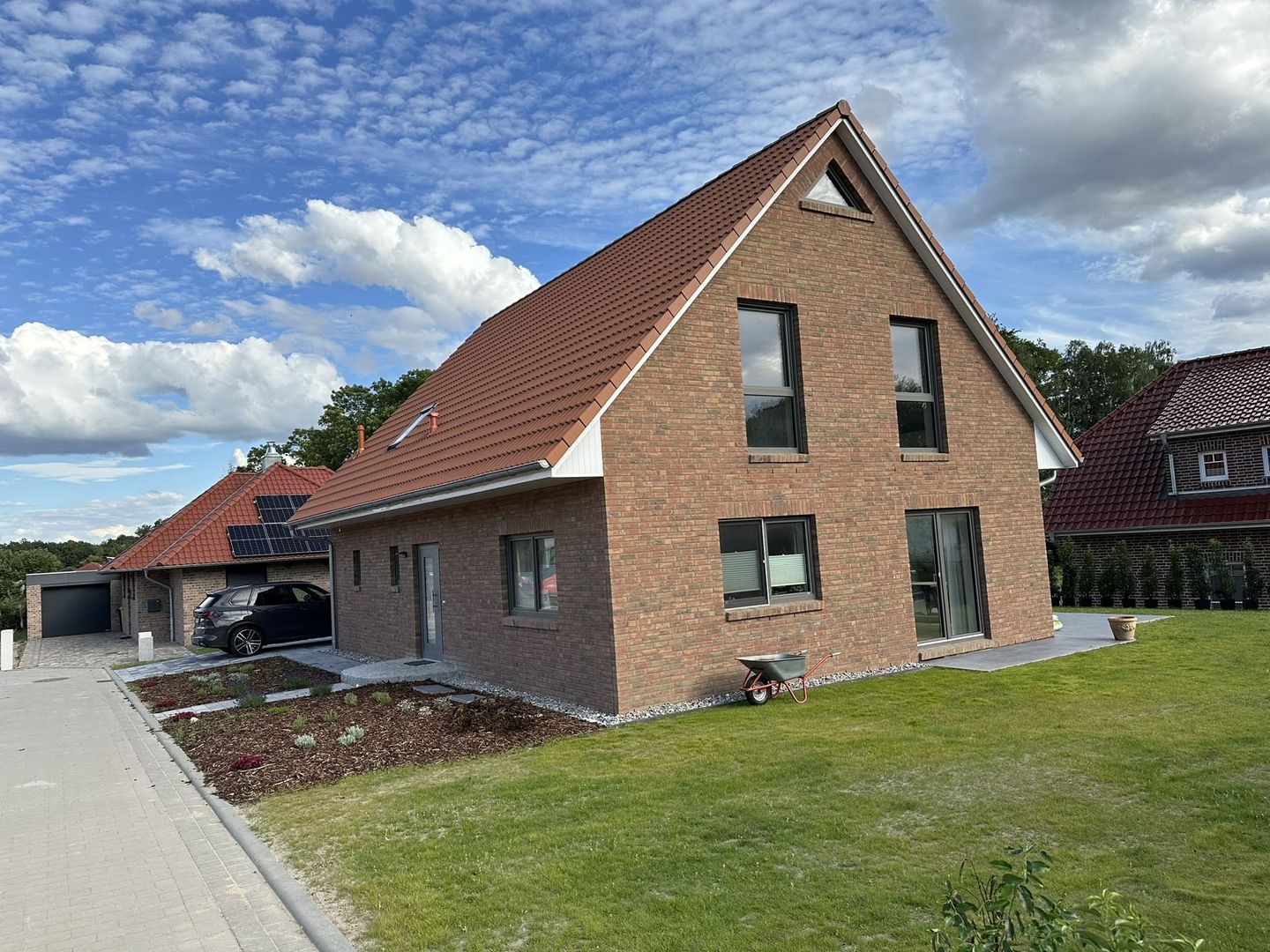 Das Außenareal begeistert mit Terrasse, Garten und Liegewiese, Gartenmöbeln, Sonnenschirm und Holzkohlegrill – perfekt für Sonnenbaden, Spieltage oder gemütliche Grillabende mit Freunden. Das 559 m² große Grundstück bietet ausreichend Platz zum Draußensein.